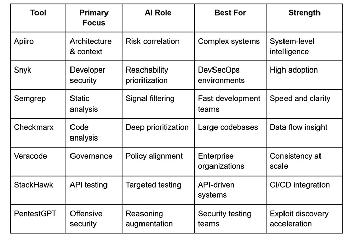 Comparison Table: AI AppSec Tools in 2026