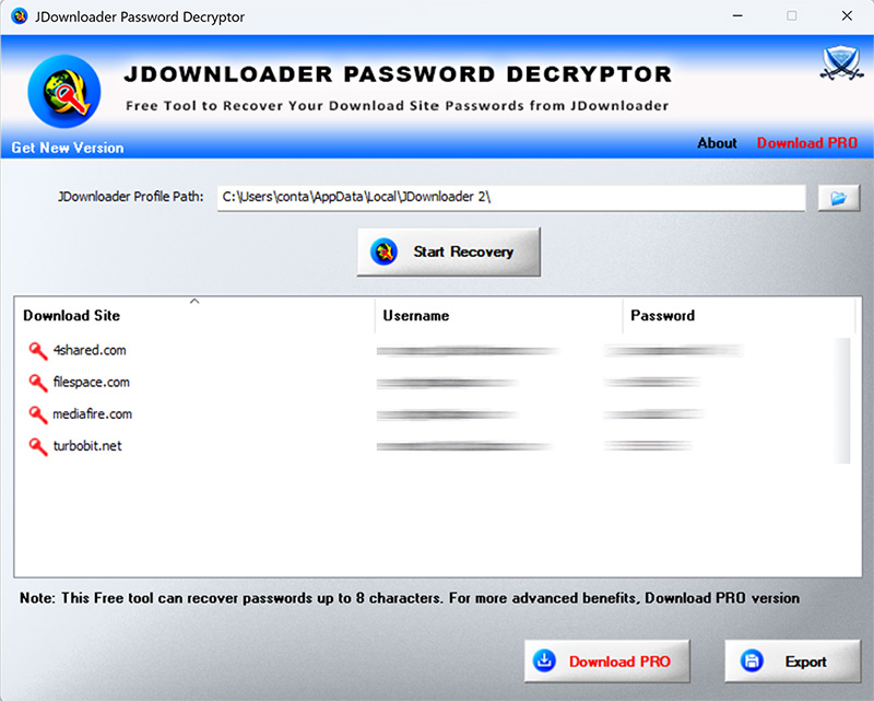 | New 2026 release supporting Windows 11. Support for recovering latest JDownloader Version. Improved GUI interface with new banner. Now support up to 8 char passwords. Fixed drag & drop issue, links etc. Now generate report in HTML file. |